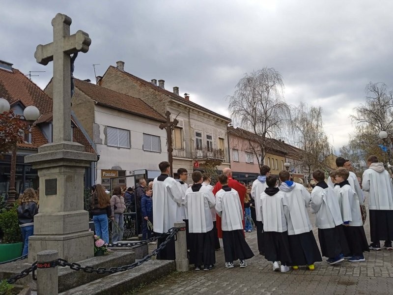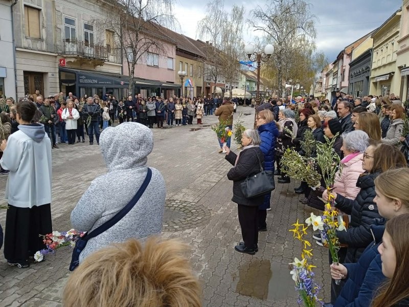 NOVA GRADIŠKA, 29. ožujak 2026. - Danas je u župi Bezgrešnog začeća Blažene djevice Marije u Novoj Gradiški svečano proslavljen blagdan Cvjetnice kojom započinje Veliki tjedan i intenzivne pripreme za Uskrs. Već tradicionalno procesija vjernika prošla je novogradiškim ulicama, a maslinove grančice i cvijeće kod križa u ulici Slavonskih graničara blagoslovio je župnik Mario Sanić. Svečanu euharistiju kojom je proslavljena Cvjetnica – Nedjelja Muke Gospodnje u župnoj crkvi predvodio je velečasni Mario Sanić, uz koncelebraciju Daria Baumana, đakona. Misno slavlje uveličao je župni zbor koji je otpjevao Muku Gospodnju.