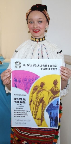 CERNIK, 20. travanj 2026. - Kulturno-umjetnička udruga Cernik jučer je organizirala je već tradicionalnu manifestaciji Dječje folklorne susrete. U Hrvatskom domu u Cerniku, pred brojnom publikom okupili su se izvođači iz KUD-a „L. I. Oriovčanin“ iz Oriovca, KUD-a „Tkanica“ Okučani, HKUD-a Osijek 1862“iz Osijeka i KUU „Cernik“ iz Cernika koji su predvođeni koreografkinjom Sanjom Podkonjak Grgić izveli posavske pjesme i plesove. Predsjednica Jugović, pozdravljajući nazočne, rekla je kako je cilj ovih događanja promocija rada s djecom i povezivanje s drugim folklornim društvima koja njeguju i čuvaju slavonsku folklornu baštinu. Vitomir Žakić, načelnik općine Cernik koja pomaže rad KUU Cernik, izrazio je zadovoljstvo što se manifestacija održala i što KUU Cernik uspješno nastavlja s njezinom organizacijom.