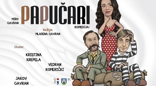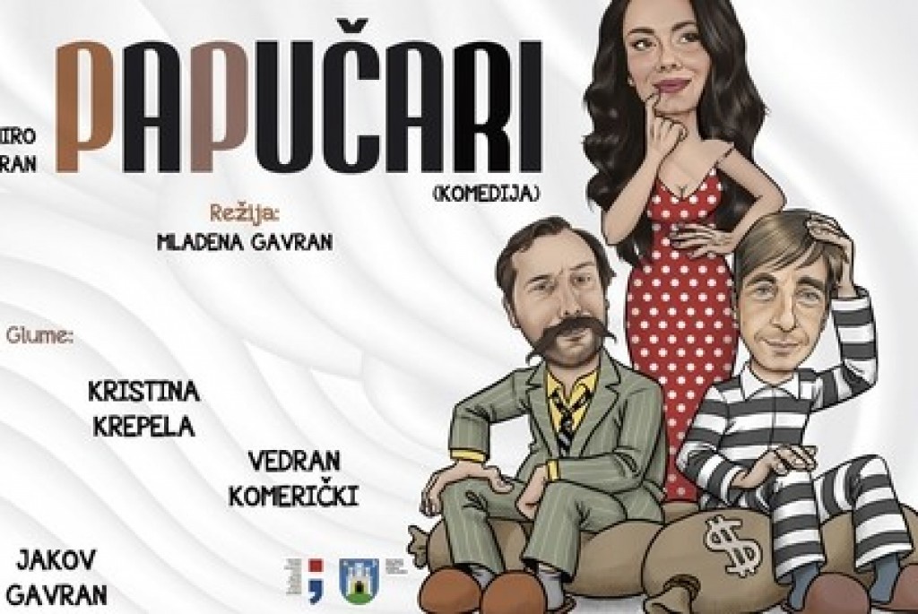 S velikim veseljem najavljujemo novu komediju Teatra Gavran „Papučari“ koja će se održati u utorak 5. svibnja u 20:00 sati u Domu kulture. Predstava autora Mire Gavrana i redateljice Mladene Gavran dio je 12. manifestacije Let s Gavranom. U predstavi nastupaju: Kristina Krepela, Vedran Komerički i Jakov Gavran