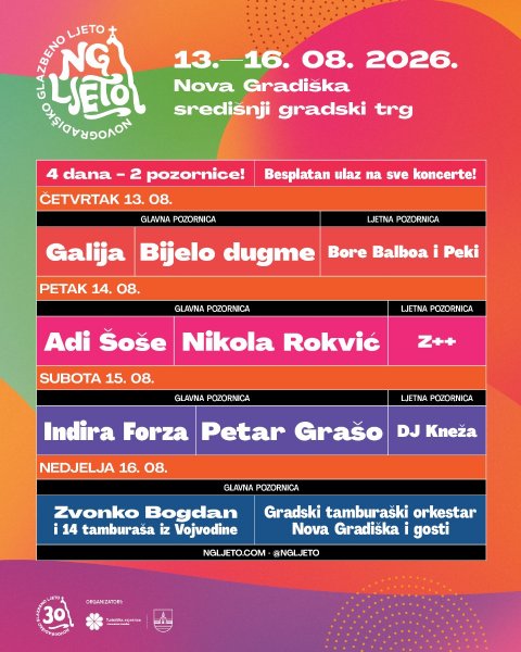 NOVA GRADIŠKA,11. veljače 2026. - Danas je u Turističkoj zajednici Nova Gradiška na press konferenciji najavljeno 30. jubilarno Novogradiško glazbeno ljeto. O bogatom sadržaju, izvođačima i svim popratnim događajima govorili su Vinko Grgić, gradonačelnik, Dinka Matijević, direktorica TZGNG i Sara Šefer Balić.
