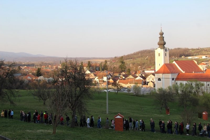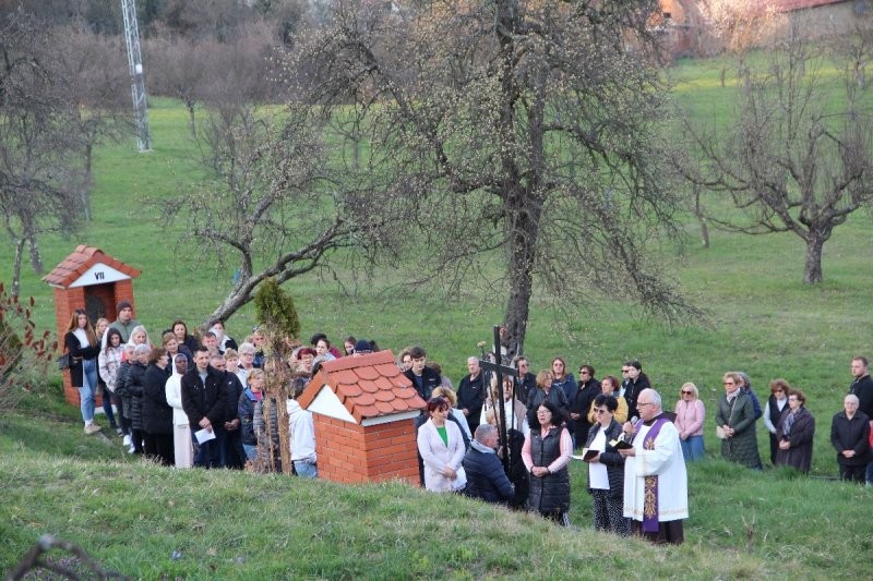CERNIK, 16. ožujak 2026. – Brojni vjernici župe svetog Petra apostola u Cerniku jučer su molili pobožnost Križnog puta na kalvariji zajedno sa molitvenom grupom Sveti Ivan od Boga iz Šumetlice, predvođena fra Željkom Paurićem. Ova molitvena grupa Sveti Ivan od Boga je prvi puta organizirala odlazak i sudjelovanje na pobožnosti križnog puta na kalvariji u Cerniku. Molitvu je predvodio fra Josip Grubišić, gvardijan Franjevačkog samostana u Cerniku. Pozvani su i vjernici iz Šumetlice i Podvrškog. Posebno su zamoljeni roditelji da potaknu svoju djecu koja imaju vjeronauk u školi ili se u župi pripremaju za sakramente krizme i prve pričesti i da se pobrinu za njihov prijevoz. Odaziv je bio velik, a dan prekrasan pa su svi uz molitvu mogli uživati u Božjoj prirodi, cvijeću na livadi i procvalim voćkama koje najavljuju dolazak proljeća. Neki od vjernika su sudjelovali u molitvenoj meditaciji kod pojedinih postaja. Nakon molitve križnog puta svi su otišli svojim kućama zahvalni Isusu što su mogli razmatrati njegovu muku i smrt i odlučni da se odreknu grijeha i zla, napasti i zloga na što nas poziva ovo korizmeno vrijeme.